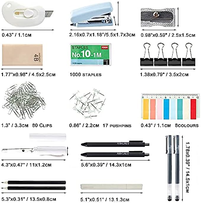 【EASY TO CARRY】- Our office supplies are packed in a reusable transparent plastic organizer case with 6 separated compartments, easy to carry and store when traveling or Outing. This small office supplies supply you with a matching set of everything you need for your work space.