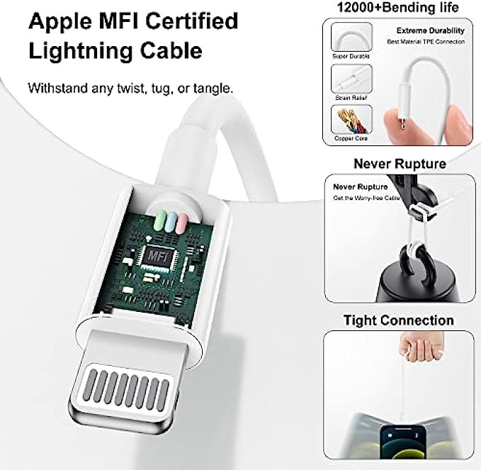 • ✅【Super Safe & Fast Charging】 The USB-C lightning iPhone charger has multipotent safety system ensures complete protection for your lightning devices,avoiding from over-voltage, over-charge, over-heat, etc. Tangle-free 10 Feet length is convenient for usage while charging and sync at home/office/travel in bed, hotel rooms, and more.