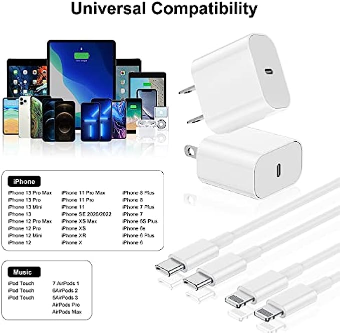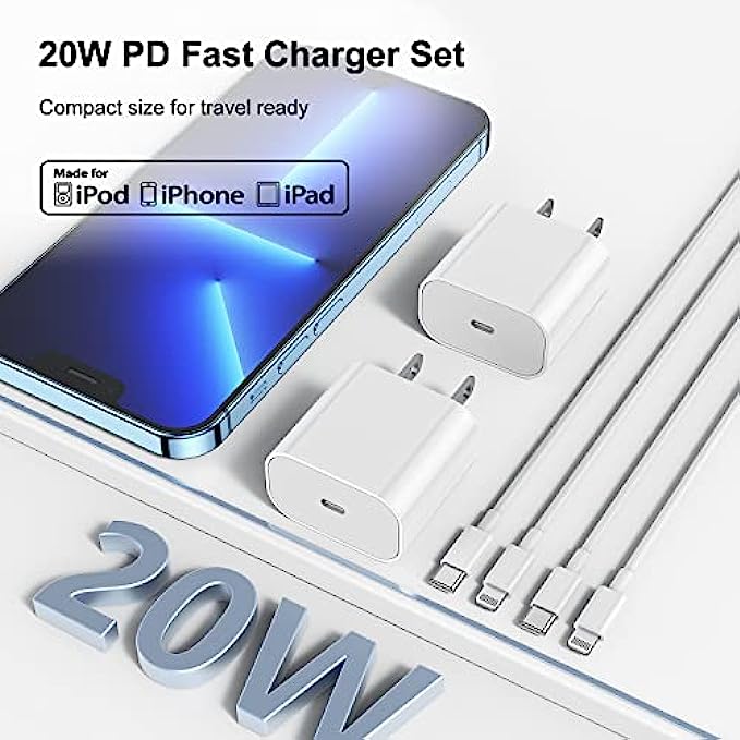 • ?【One Charger, Lifetime Service】You will get 2Pack 20W PD 3.0 Applicable Apple Charger Plug and 10FT MFi Certified USB C to Lightning Cable, 2-Years worry-free refund and replacement guarantee. if you have any questions, please feel free to contact us, we have confidence in our products and we are responsible to our customers,We promise to solve your problems within 24 Hours.(Contact method: "Account service" → "Order history" → "Contact seller")
