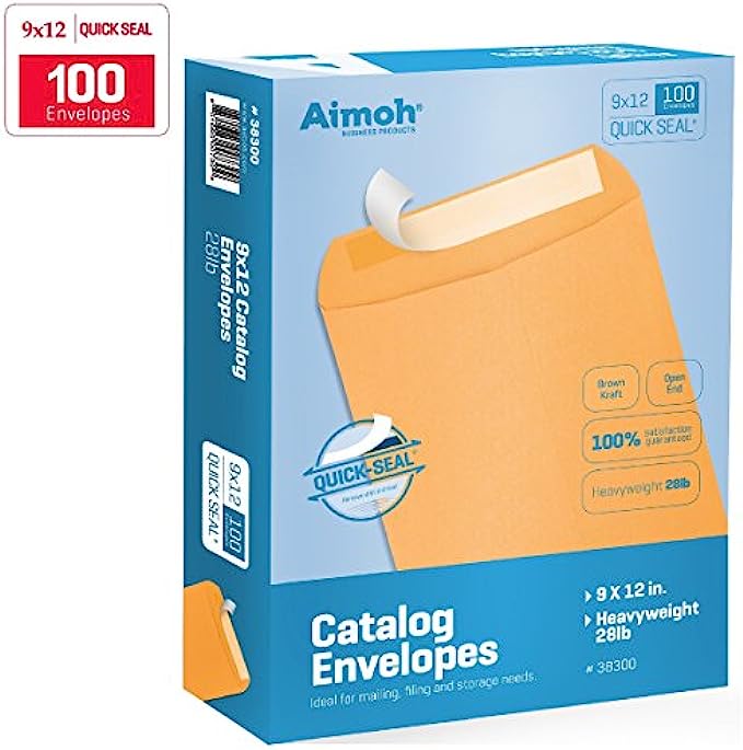 • 9x12 KRAFT ENVELOPES; Aimoh’s Catalog Envelopes combine tough 28lb golden kraft paper stock, strong self-sealing SELF-SEAL Closure for the best catalog envelopes on the market, perfect for large documents and all business correspondence