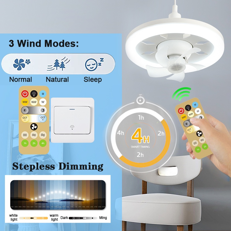 E27 Screw MINI Ceiling Fan With Light 360° Rotation Ceiling Fan Exhaust Fan in Kitchen/Toilet Electric Fan