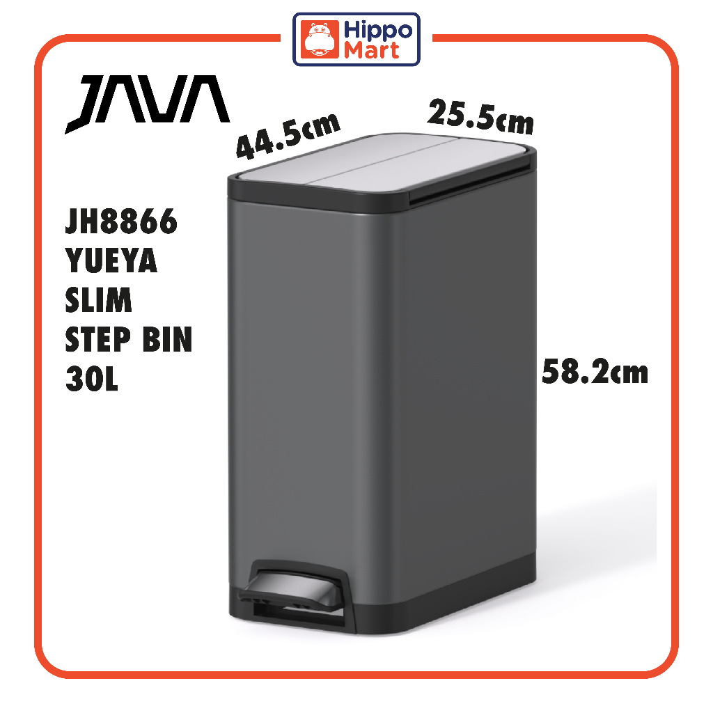 JAVA YUEYA JH8866 Slim Step Bin 30L with Soft Closing [Multiple Color] Trash Bin, Dustbin, Dustbin for Kitchen, Dustbin
