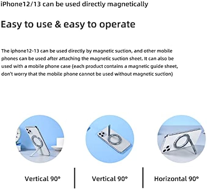 • Magnetic phone ring grip is specially designed for iPhone 13/13 pro/13 pro max/13 mini/iPhone 12/12 pro/12 pro max/12 mini with Mag Safe cases or No case