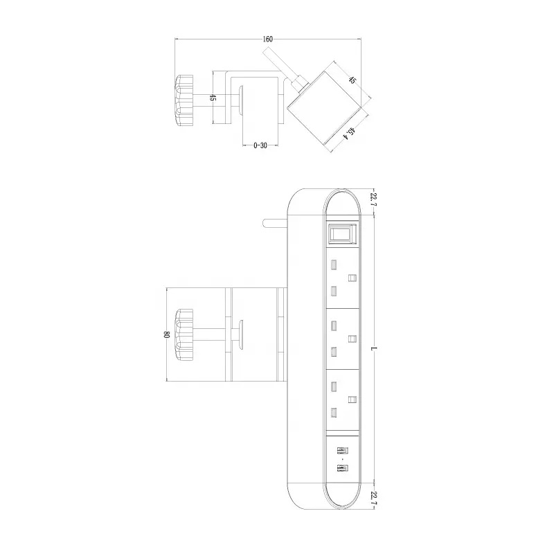 Melery Tablet Socket Power Strip UK 3 Ways Electrical Plugs Outlets Sockets with USB Port Clamp on Conference Table Home Office Desk for Singapore Malaysia
