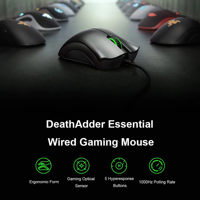 Original Razer Mouse DeathAdder Essential - Essential Gaming For PC Laptop Computer [Black/White]