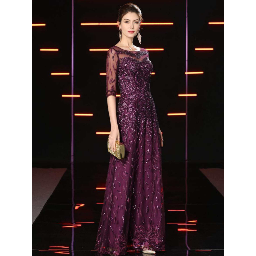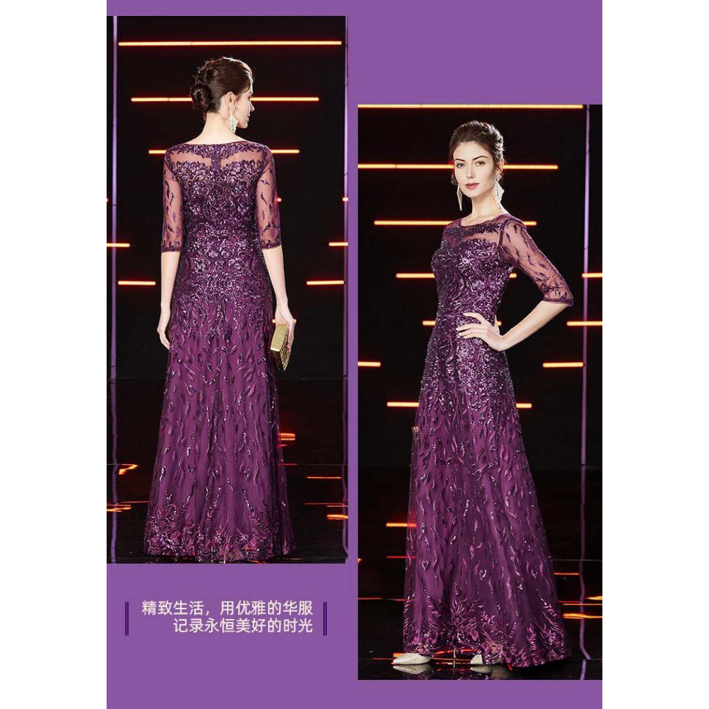 Purple High End Wedding Mother Dresses Noble Korean Sytle Happy Mother-in-law Wedding Dress Sequins Plus Size Women Party Dress