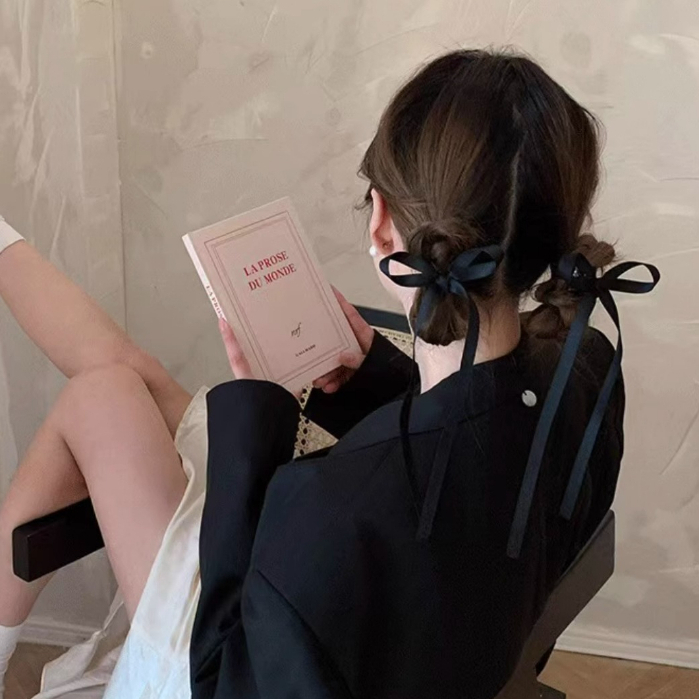 [Beautiful Magpie] 2pcs/set French ballet style bow ribbon small clip pure desire sweet girl high-end ribbon hair clip