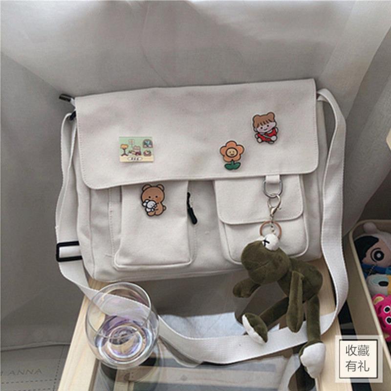 【Crazy Bag】Japanese Harajuku Cute Retro Girl Messenger Bag Canvas Student Bag School Bag Student Shoulder Bag Female Bag