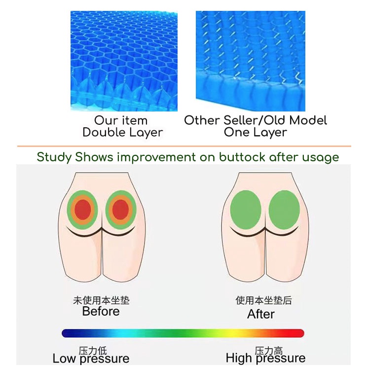 Easyhome.sg Gel Cushion Seat Double Layer Lumbar Back Support Egg Sitter Chair & Car Cushion Pad Breathable
