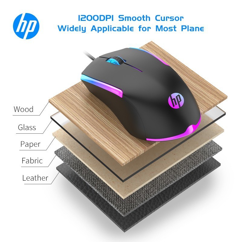HP M160 Wired Gaming Mouse, 1000 DPI, High Performance Optical Tracking Gaming Mouse, with 7 Colours Rainbow LED, PC
