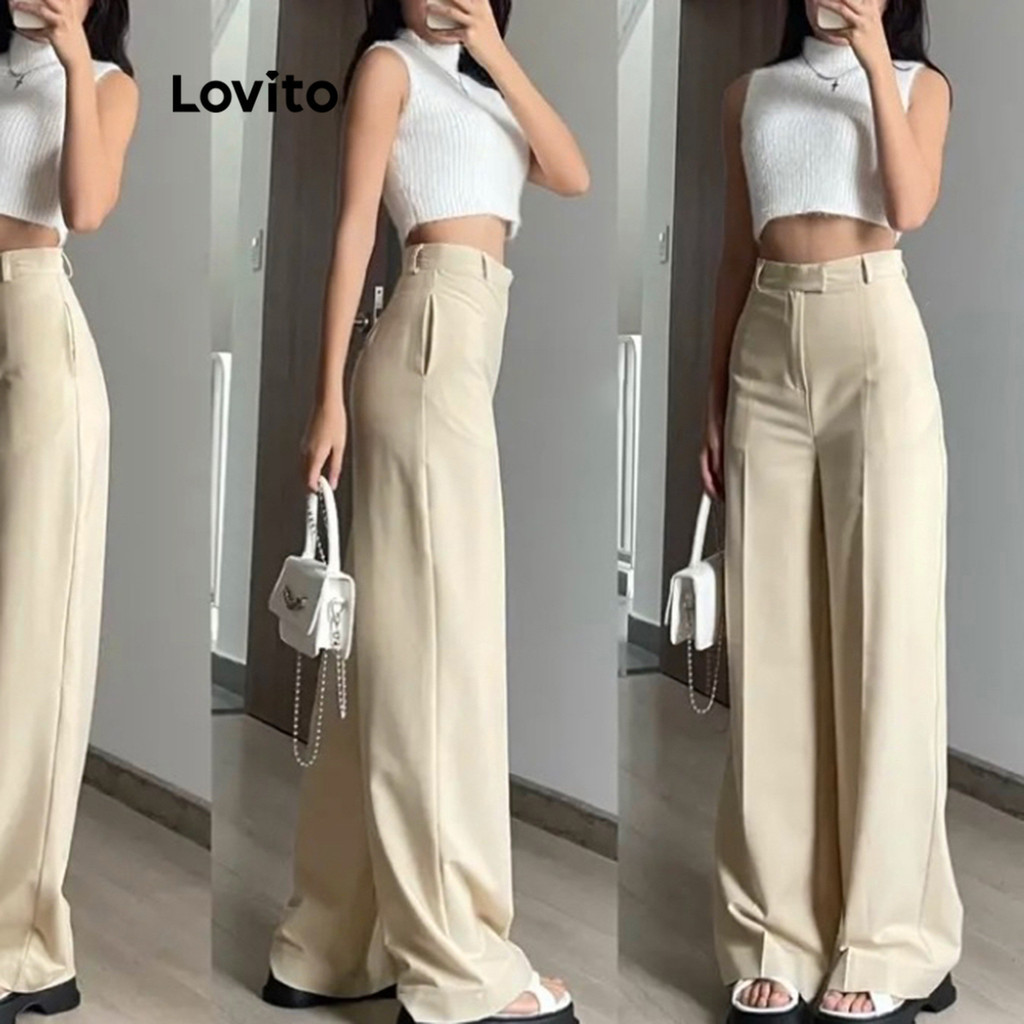 Lovito Casual Plain Pocket Pants for Women L67AD135 (Khaki)