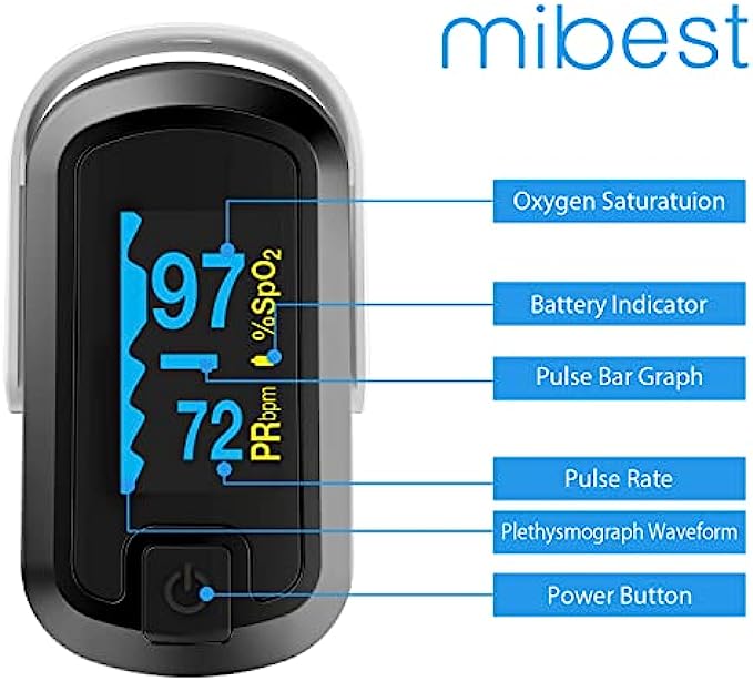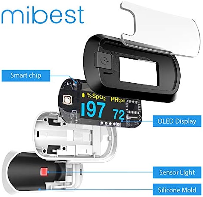 mibest OLED Finger Pulse Oximeter, O2 Meter, Dual Color White/Black