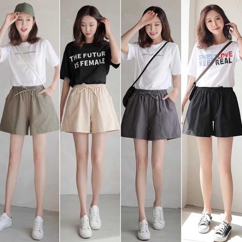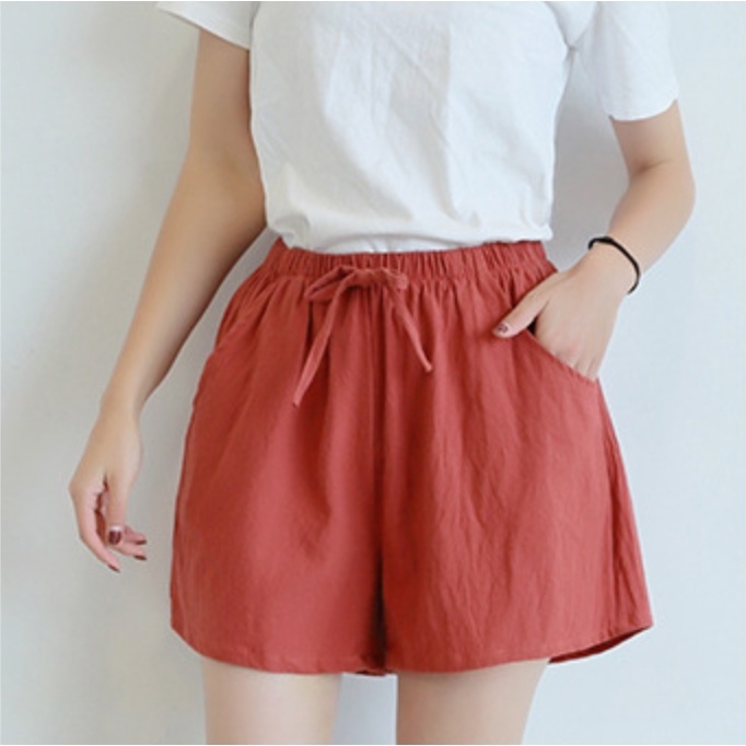 【Ready Stock】 Women Seluar Pendek Perempuan Loose Wide Leg Short Elastic Waist Casual Shorts