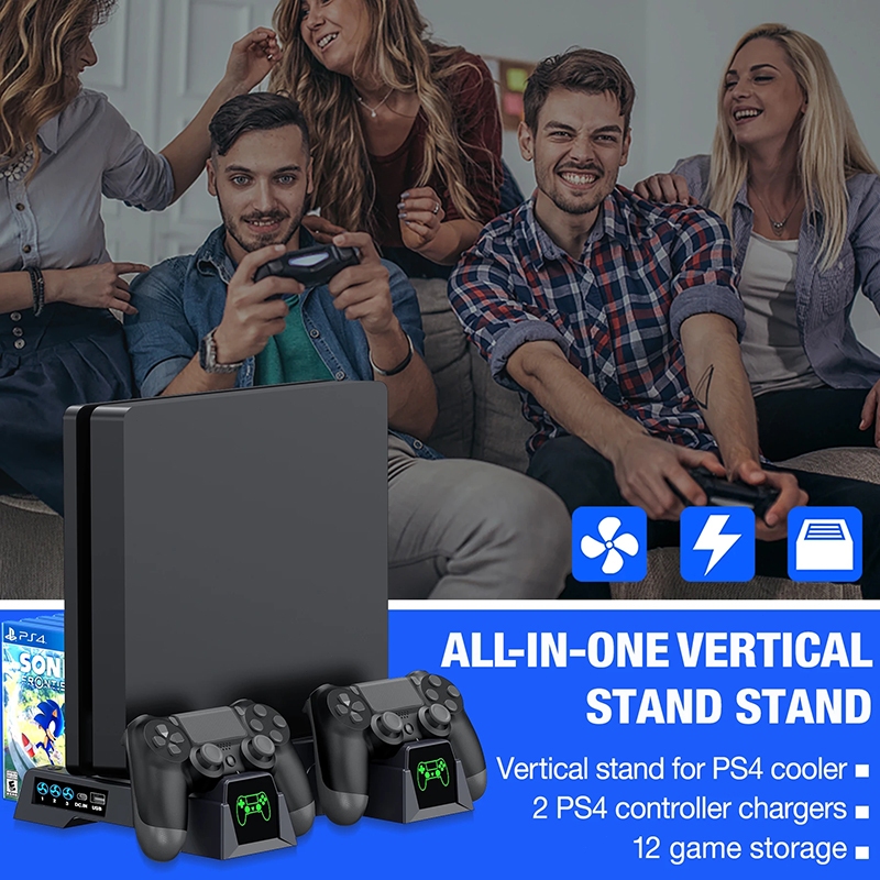 Product Quality:Excellent Best Feature(s):Saves space Value For Money:Yes The PS4 Dual Charger LED Vertical Cooling Stand is a must-have for PS4 owners. It efficiently charges two controllers simultaneously and keeps your console cool with its built-in fan. The LED indicators are convenient, and the vertical design saves space. Perfect for PS4, PS4 Pro, and PS4 Slim models.