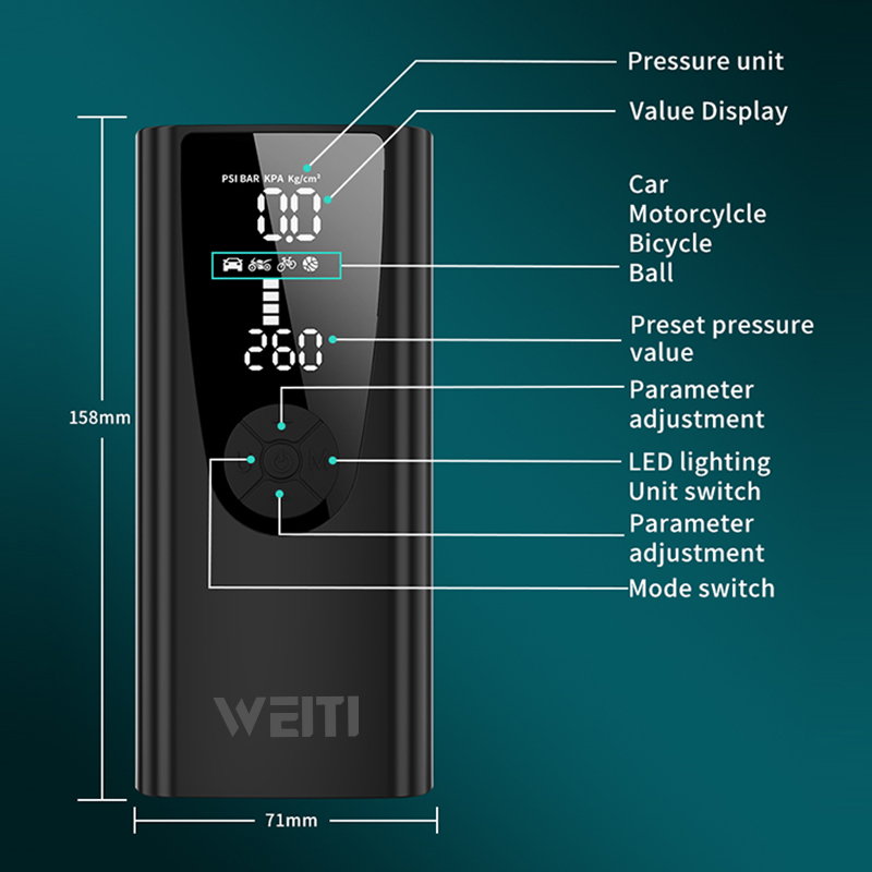 [SG Stock] WEITI 10000mAh Electric Air Compressor Inflator Car Bicycle Pump Wireless Air Pump Car Air Pump Tyre Pump Tyre Car Inflator Portable Pump Digital Tire Pressure Detection