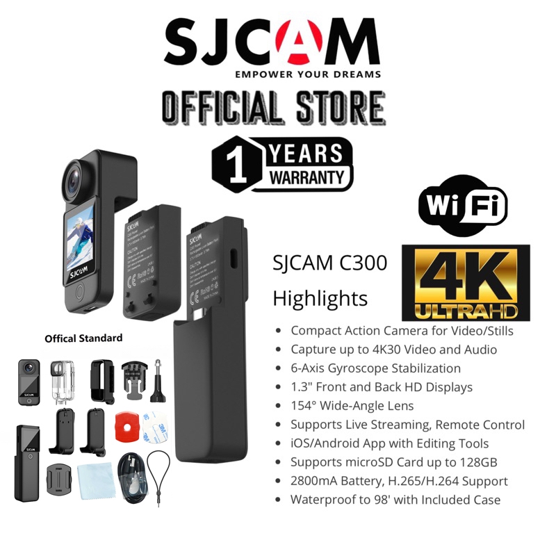 SJCAM C300 Vlog Action Camera 4K/30FPS 5G/2.4G WiFi 30M Waterproof Sports Camera WiFi Camera Motorcycle Camera Digital Camera