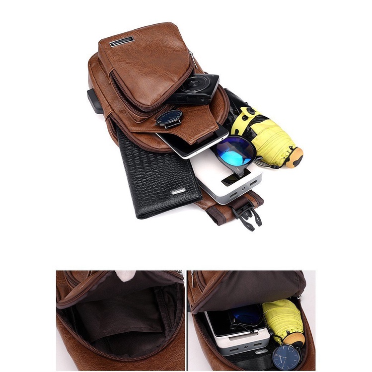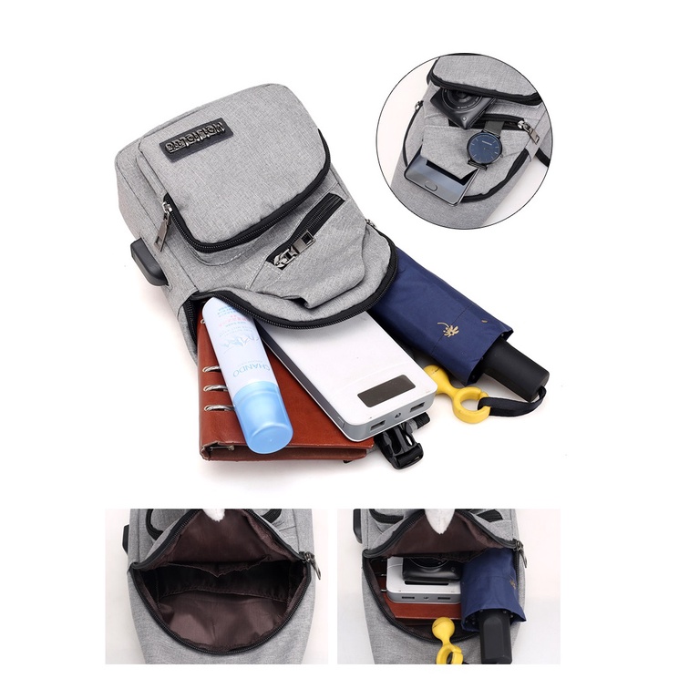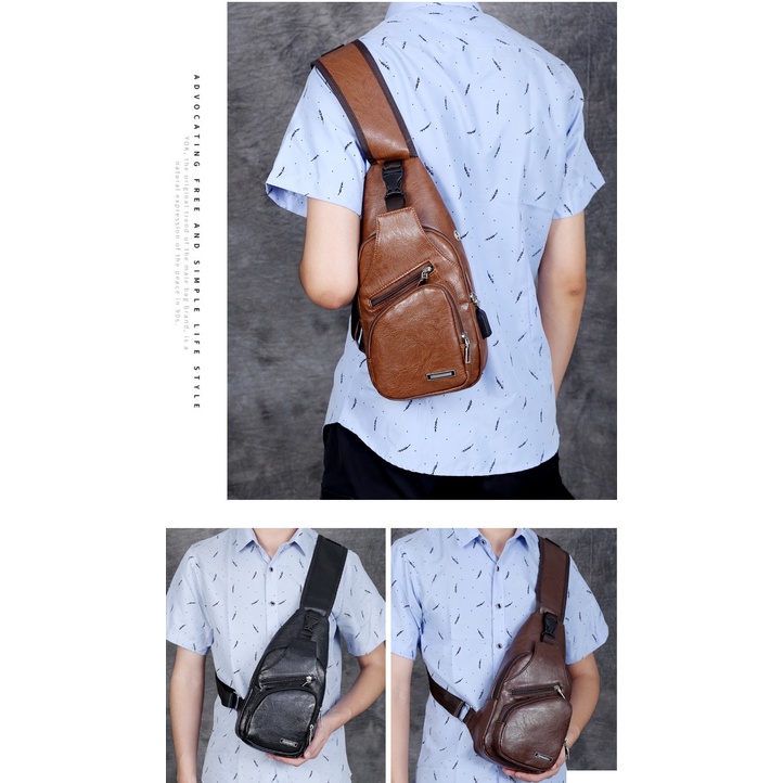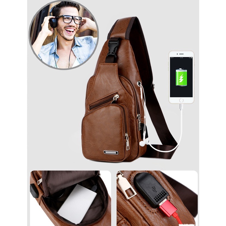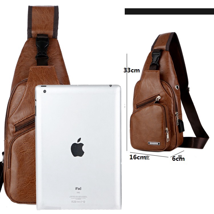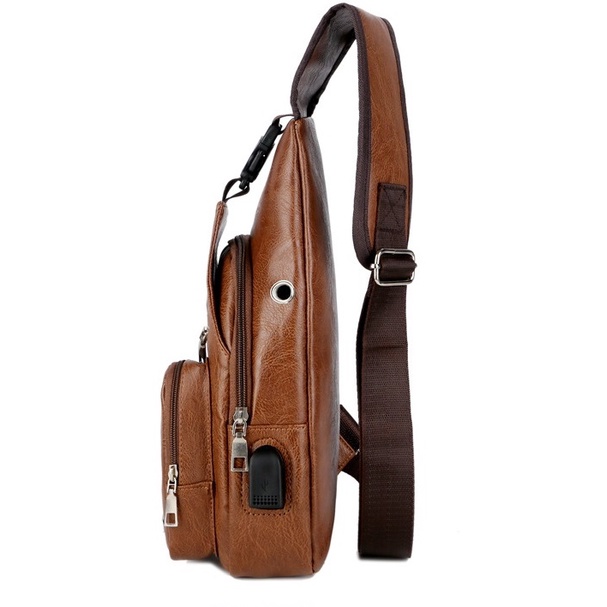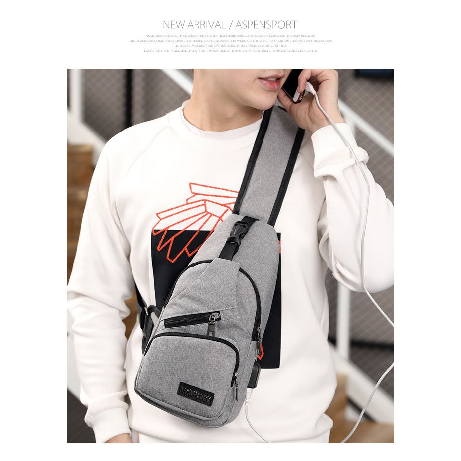 Spot men's chest bag with headphone hole USB men's shoulder bag